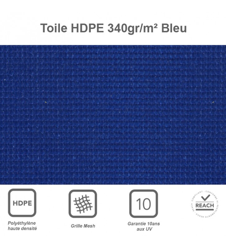 Voile d'ombrage (ou toile tendue) pour extérieur : terrasse, pergola, jardin, balcon… de dimensions 2,90 x 2,90 m (carré). Toile polyéthylène haute densité très résistante (340gr/m²) de couleur bleu. Confection par sangle 40mm dans un ourlet sur le pourtour avec anneau demi-rond à chaque angle. Sa durée de vie est de 10 ans environ. Pour la fixation, nous vous fournissons 1,50m de sangle 25mm par angle.